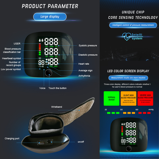 Electronic Wrist Blood Pressure Monitor with Voice Guidance for Home Use