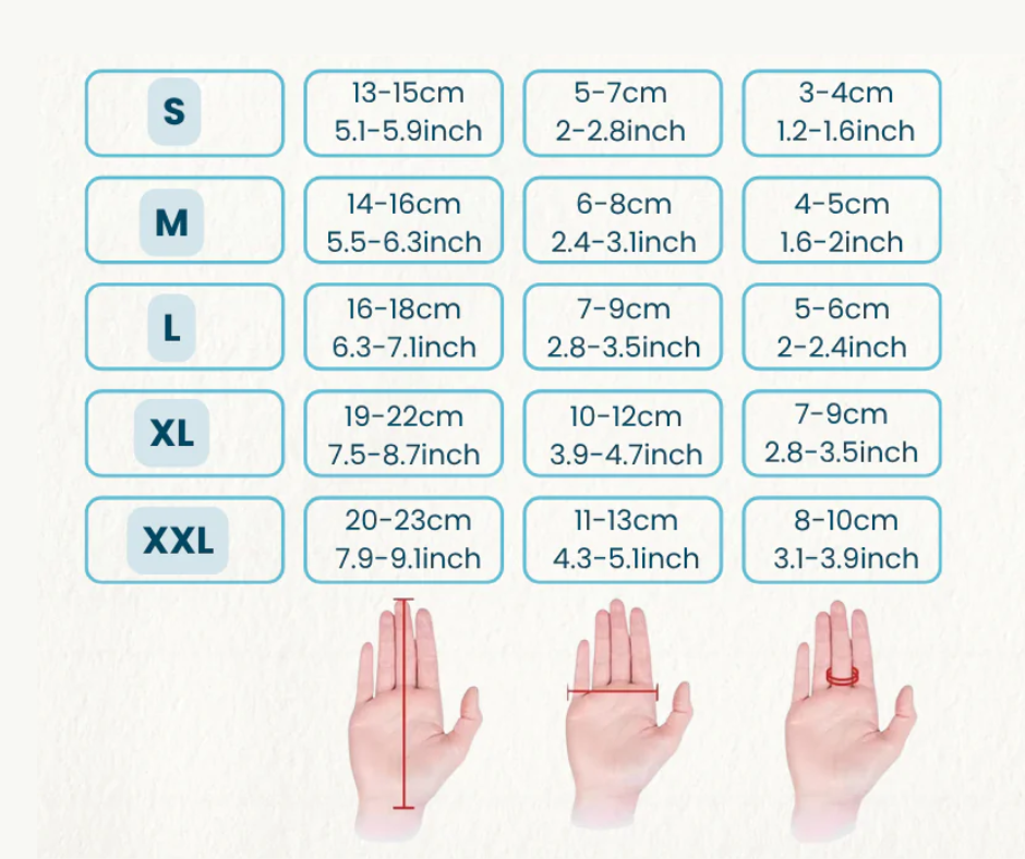 Measure the hand in a relaxed position. If measurements fall between sizes, choose the larger size for comfort, especially for stiff or limited-mobility hands. Adjustable straps help ensure a secure fit.